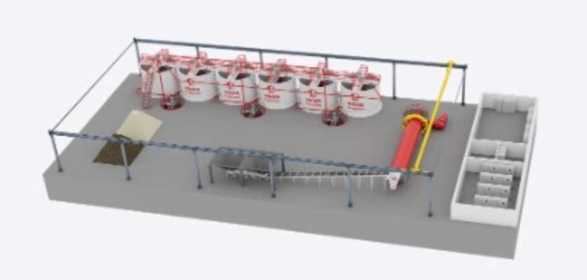 Blandning och satsningssystem: Detta inkluderar silor för lagring av råvaror, skalor för exakt vägning och en stor kapacitetsblandare för att skapa uppslamningen.